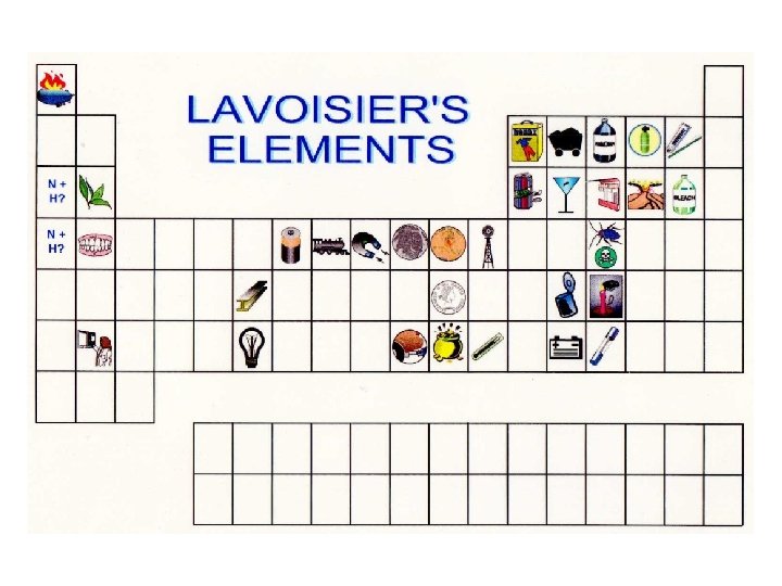 Lavoisier’s Elements “Elements in the body” “Nonmetallic elements” “Metallic elements” “Earths”