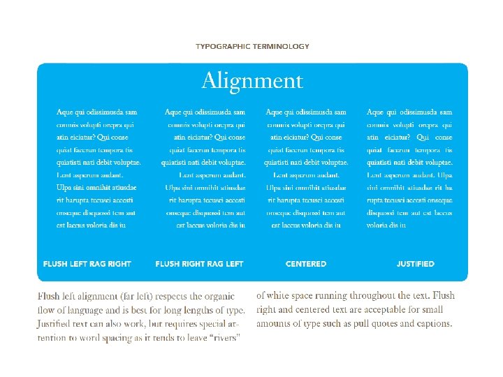 Type is an important design element used to communicate and, after imagery, is the main source used to communicate ideas and meanings. Typography plays an important role in how audiences perceive your document and its information. Good design is about capturing your audience’s interest and helping your audience gather information quickly and accurately. Typography creates relationships between different types of information, both organizing this information and keeping it interesting.
