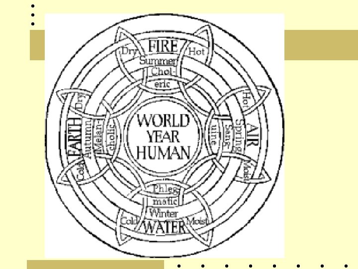 Aristóteles: elementos Os 4 elementos formam pares de opostos, e incluem todas as possibilidades de substâncias quentes/frias, úmidas/secas • • Água = fria e úmida Terra = fria e seca Ar = quente e úmido Fogo = quente e seco