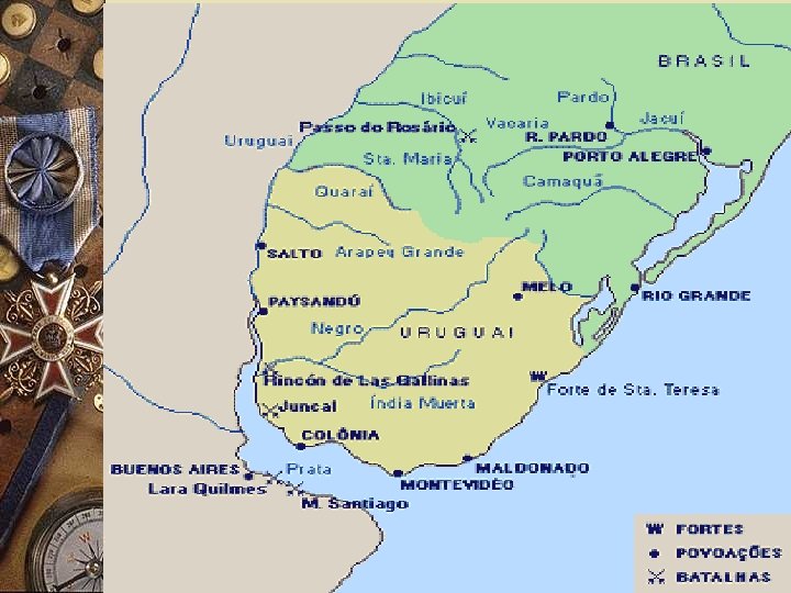 Guerra da Cisplatina 1825 -1828 w Brasil e Argentina disputam o território que iniciou uma guerra pela autonomia; w Guerra impopular que D. Pedro I insistiu em lutar: milhares de mortos de brasileiros de Santa Catarina e Rio Grande do Sul; w A região consegue sua independência e não fica nem para o Brasil nem para a Argentina: torna-se a República Oriental do Uruguai.