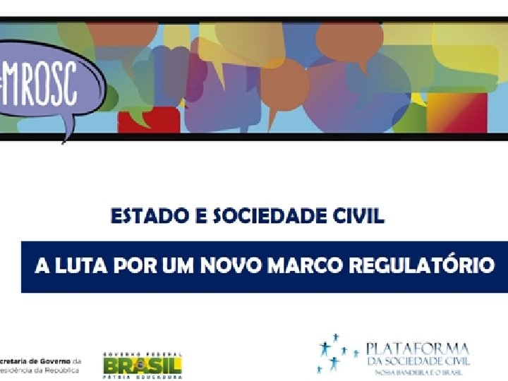 PAUTA DA PLATAFORMA Instrumento próprio para reger repasses de recursos públicos para OSCs que atuam em prol do interesse público Legislação Nacional Inclusão de cooperativas de economia solidária Chamamento público obrigatório Exigência de experiência na área. Previsão de projetos realizados em rede, por várias OSCs consorciadas.