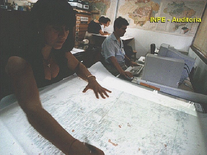 NO PASSADO. . . AVALIAÇÃO DAS ÁREAS DESMATADAS - Folha de papel milimetrado. - Grade de pontos. - Mesa digitalizadora (programa CAREAV) - PC - AT 286