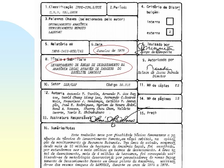 Revista Veja, 6 de dezembro de 1978 (René Novaes) A área de estudo apresenta 55 milhões de hectares dentre os quais 4 milhões já foram devastados (~10%).