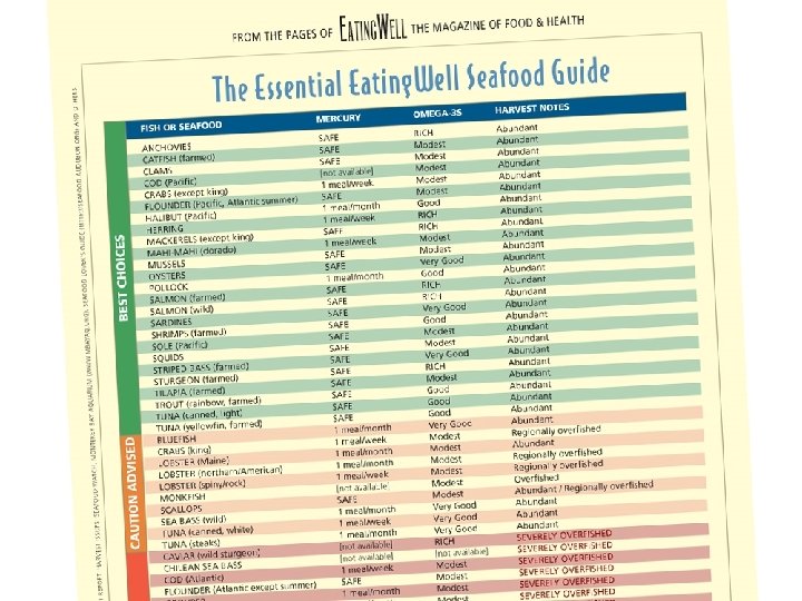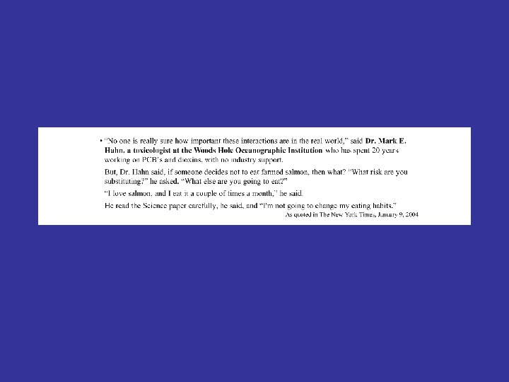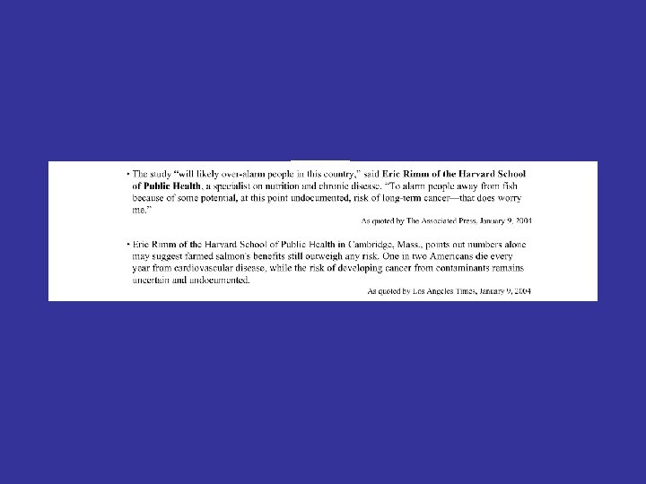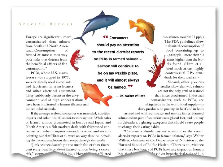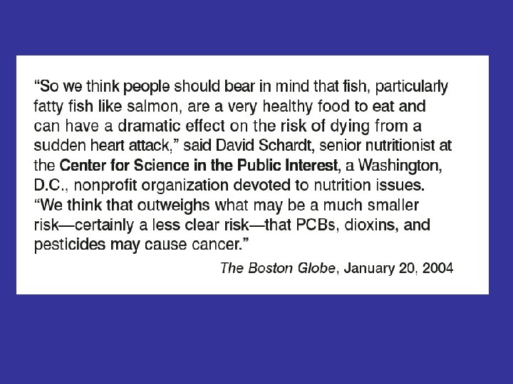 • “It’s a little bit hypocritical when we eat so much junk food and are so overweight that we would start worrying about fish from good providers such as established fish markets. ” • Dr. George Blackburn, Harvard Medical School • The Journal of the American Medical Association, February 25, 2004