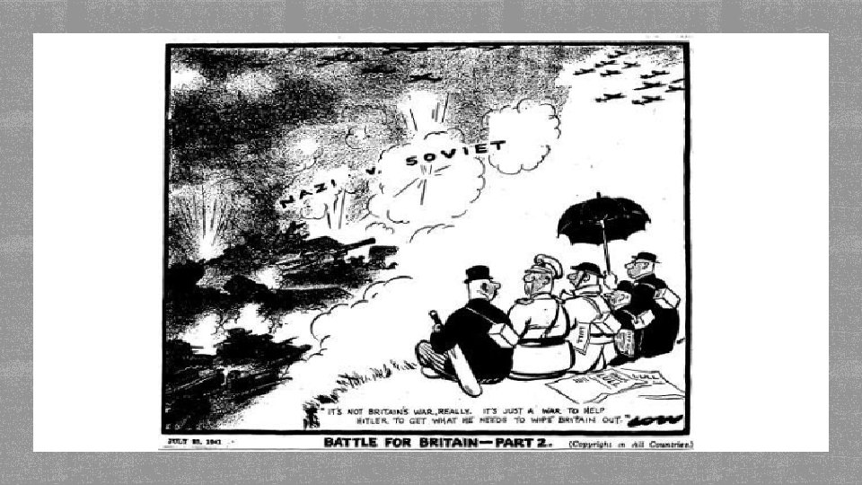 § To force a surrender Hitler was ready to starve more than 2. 5 million living in Leningrad § German bombing destroyed warehouses where food was stored resulting in people eating cattle and horse food among other things § Yet, the city refuses to crumble causing Hitler to look at Moscow- the capital and heart of the Soviet Union § October 2, 1941 Nazi make their way and by December advanced to the outskirts § Downfall: temperature dropping + Nazi’s in summer uniform= Nazi retreating § Result: Hitler ordering “No retreat!” -held the line against the Soviets until March 1943 -gained nothing but cost and 500, 000 German lives