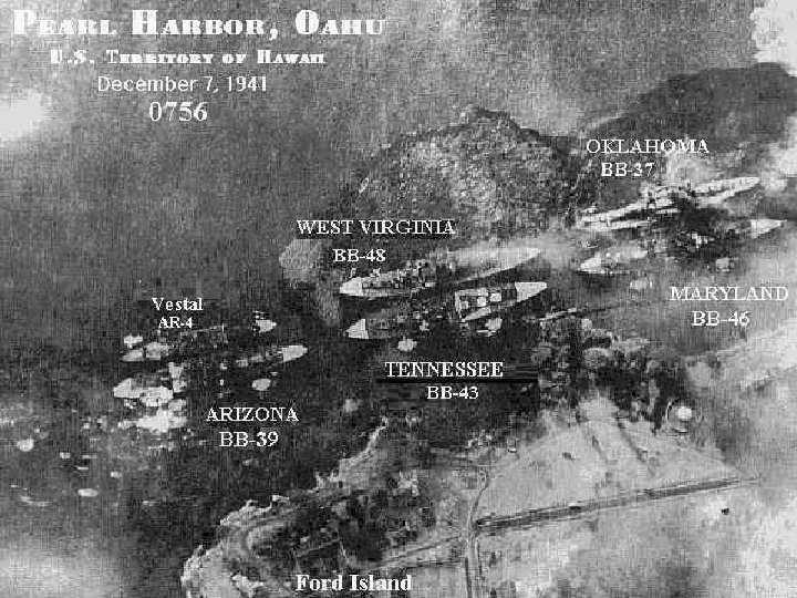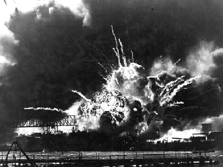 Pearl Harbor 6) On the morning of December 7 th, 1941, two waves of over 350 Japanese planes attacked the U. S. naval base at Pearl Harbor, Hawaii. The entire Pacific fleet of battleships was either sunk or severely damaged, over 151 planes were destroyed, and over 3, 000 U. S service personnel were killed or wounded.