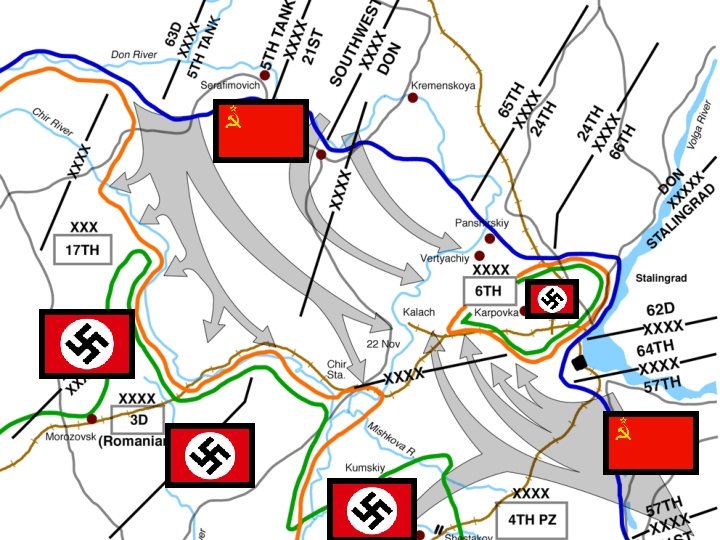 Stalingrad 7) However, Hitler was preoccupied with concentrating his forces within the city and little attention was given to reinforcing the weak German flanks. A massive Soviet counter-attack in late November actually surrounded over 250, 000 troops of the German 6 th Army.