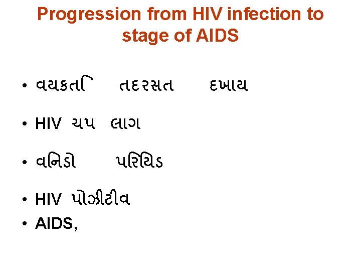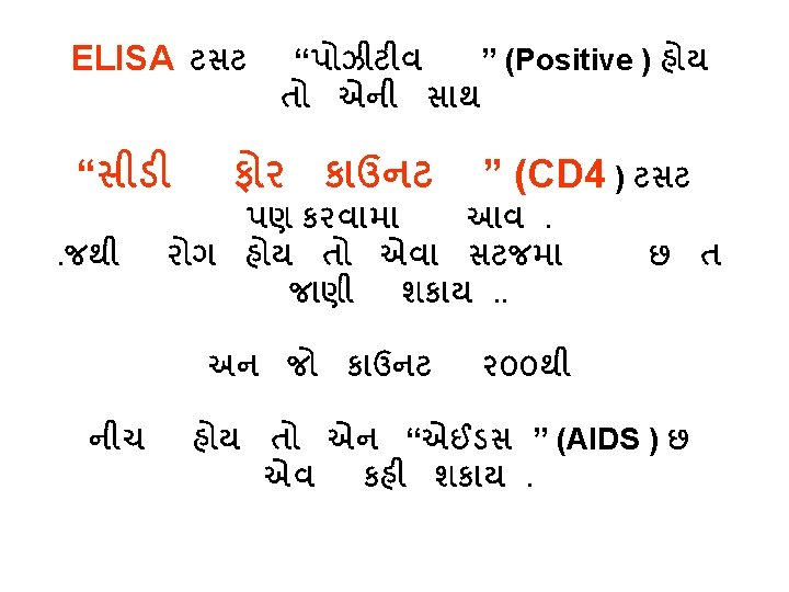 રકષણ કરત સ સટમ નબળ બન એટલWindow Period ન ચન હ ય શક. . … (1) ����� �� ��� (No • Window period: interval between where HIV Energy( actually appears, and is ultimately detectable by an antibody test. (2) વજન ઓછ થ ય (Weight Loss) • Majority of cases test positive within three (3) ઘણ વ ર ત વ અન પરસવ months of exposure & some of them test positive થવ within three to six months of exposure (4) ય દશકત ગમ વવ (5) ફનગલ ઈનફકશન