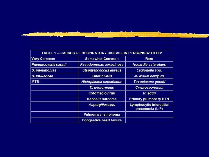 HIV and pneumonia z. PCP zhistoplasmosis zcryptococcosis zrhodococcus z. CMV z. Pneumococcus y 100 -fold risk z. Nontypable H. flu z. Pseudomonas y 40 -fold risk y. Lowest CD 4 z. HHV-8 z. Coccidiodomycosis