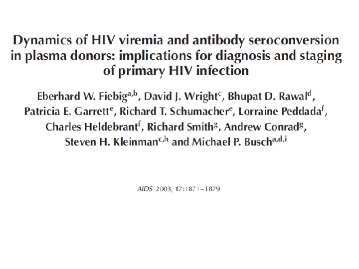 Andamento della viremia nella fase acuta dell’infezione da HIV-1 e probabilità di progressione nella malattia HIV 1 -RNA nel plasma ( copie / ml ) 106 105 62% 104 49% 26% 8% 103 Pazienti con AIDS 5 anni dopo l’infezione Soglia di sensibilità 0 0. 5 1. 0 1. 5 2. 0 Adattato da Mellors JW Science 1996; Ho DD Science 1996