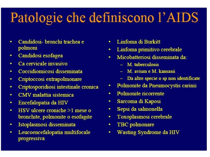 Fattori di rischio: viremia plasmatica e progressione 106 62% 105 49% 104 26% 8% 103 Soglia di sensibilità 0 0. 5 1. 0 1. 5 2. 0 AIDS