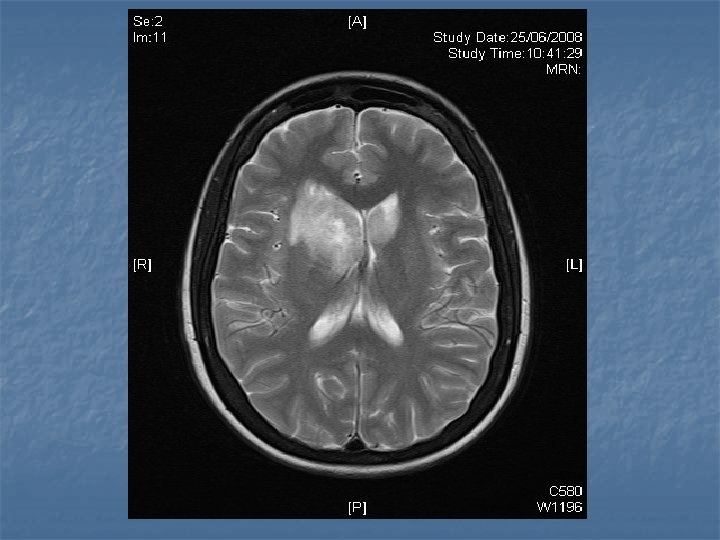 n n n PRIMARY CNS LYMPHOMA Typically occurs with marked immunosuppression CD 4<50. Marked reduction in incidence post HAART. Always EBV positive DLBC NHL. Commonly multifocal brain lesions. n High dose methotrexate iv Followed by brain XRT. n Poor prognosis survival months to 1 -2 years. n