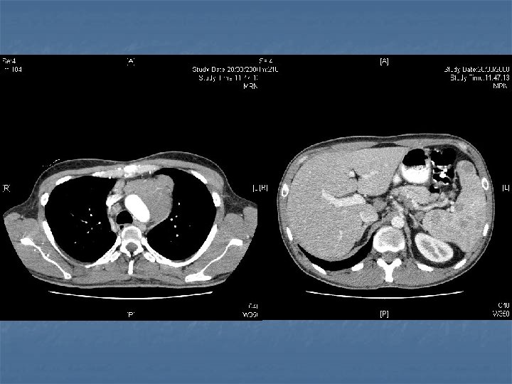 n n n n PRIMARY EFFUSION LYMPHOMA Associated with HHV 8 +/- EBV Usually presents with pleural, pericardial effusions or ascites without mass lesions. May relapse with extrcavitatory form. No standard treatment. CHOP type therapies +/- Rituximab if CD 20 +ve. Prognosis generally poor. Median survival <6 mnths.