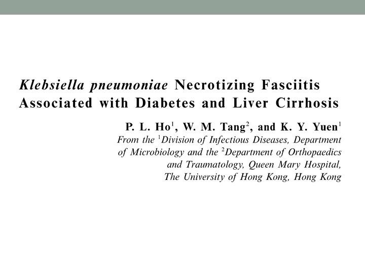 Case 2(continued) • An very obese young gentlemen • Newly diagnosed DM • Presented with DKA precipitated by klebsiella pneumoniae bacteremia/pneumonia/ liver abscess/ lumbar spondylitis • Suddenly found tetraplegic