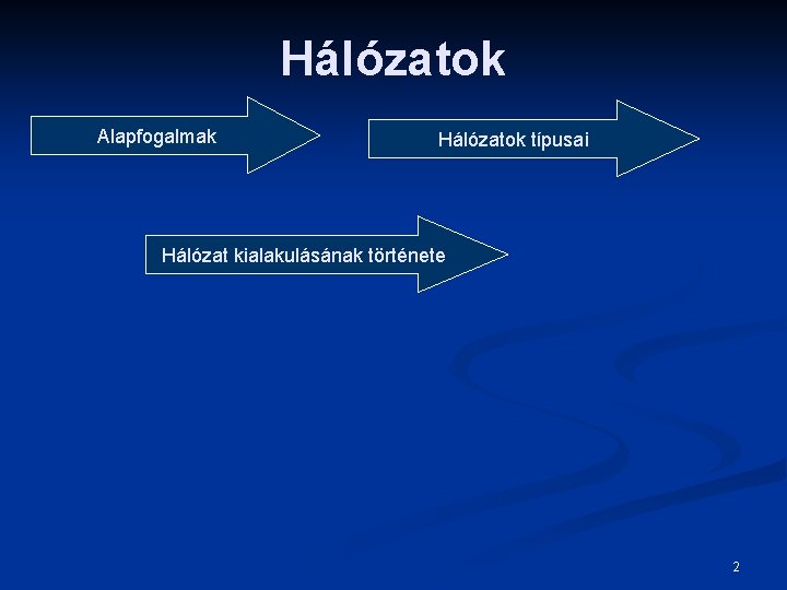 Hálózatok Alapfogalmak Hálózatok típusai Hálózat kialakulásának története 2