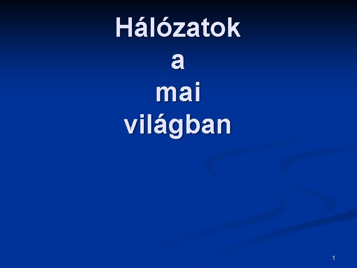 Hlzatok a mai vilgban 1 Hlzatok Alapfogalmak Hlzatok