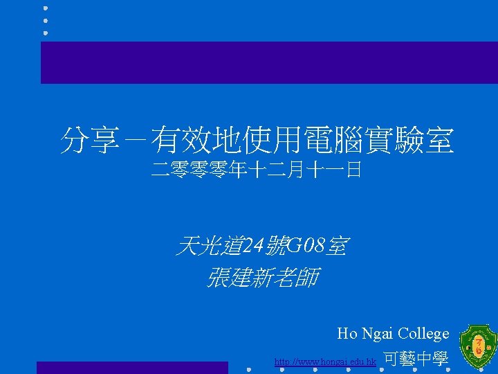 Ho Ngai College http www hongai edu hk Slides: 19 Download presentation 後面留有較大的空間 Ho Ngai College http: //www. hongai. edu. hk 可藝中學 Ho Ngai College http: //www. hongai. edu. hk 可藝中學 Ho Ngai College http: //www. hongai. edu. hk 可藝中學 網絡接線器及交換器 Ho Ngai College http: //www. hongai. edu. hk 可藝中學 Ho Ngai College http: //www. hongai. edu. hk 可藝中學 完 http: //www 2. hongai. edu. hk/~cks 多謝! Ho Ngai College http: //www. hongai. edu. hk 可藝中學