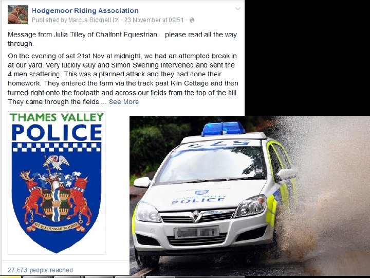 The power of social media § 27, 673 people aware of this attempted burglary § Thank you to all those who shared the Facebook posting and made so many people aware. § Would anyone like to run a Twitter feed for us?