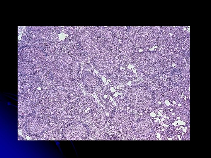 Clinical features l l Widely disseminated at presentation Nodal involvement: Painless lymphadenopathy, often cervical region is the most common presentation Hepatospleenomegaly Extranodal : Intestinal lymphoma ( abdominal pain, anemia, dysphagia); CNS ( headache, cranial nerve palsies, spinal cord compression) ; Skin, Testis; Thyroid; Lung Bone marrow (low grade): Pancytopenia