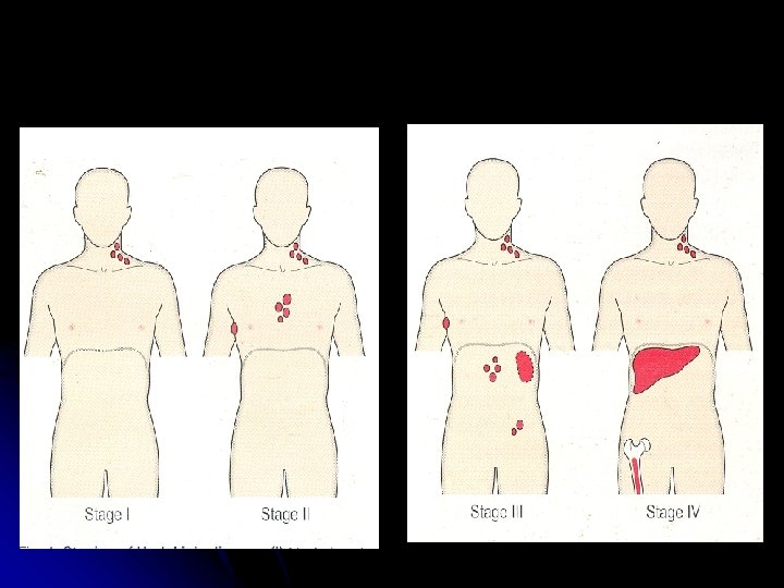 Treatment l Stage IA , Stage IIA with 3 or < 3 areas involved: Radiotherapy l Stage IB, Stage II A with > 3 areas , Stage IIB: Chemotherapy every 3 -4 weeks, 6 -8 cycles; either alone, or in combination with radiotherapy l Stage III & IV : Chemotherapy + Radiotherapy ( for bulky disease or palliation of symptoms)