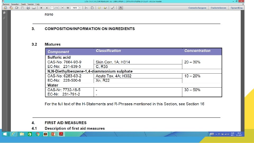 • Carcinogeen, Mutageen en Reprotoxisch • Categorie 1 A, 1 B, 2 A, 2 B (bewezen en verdacht). • Verplicht beleid op los laten • Het liefst vervangen door iets anders. • Eerst weten heb ik die stoffen wel • Start met het SDS (Safety Data Sheet)