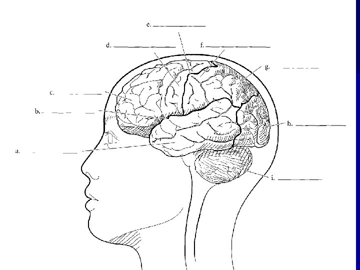 Motor Areas • Primary Motor Areas • frontal lobes • control voluntary muscles • Broca’s Area • anterior to primary motor cortex • usually in left hemisphere • controls muscles needed for speech • Frontal Eye Field • above Broca’s area • controls voluntary movements of eyes and eyelids