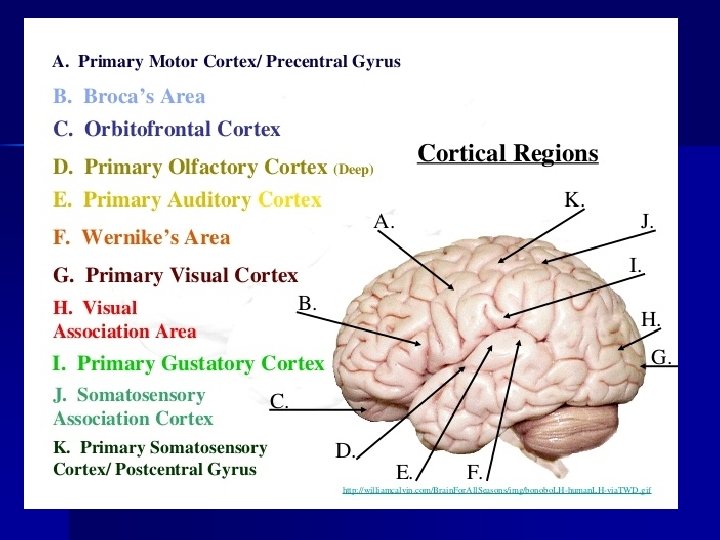 Functional Regions of Cerebral Cortex n n Hemisphere Dominance (Brain Lateralization): most basic functions are controlled by both left and right hemispheres (communication exists thru corpus callosum) Memory – A consequence of learning whereas learning is the acquisition of new knowledge, memory is the persistence of learning n n n Short Term Long Term A lesion in the cerebral cortex could cause – Motor or sensor deficits – Intellectual impairment – Strange behavior in thought patterns