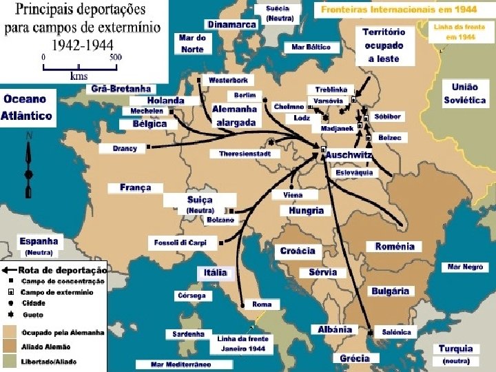 Kristallnacht Durante a tarde e a noite de 9 para 10 de Novembro de 1938 foram vandalizadas e saqueadas centenas de sinagogas e lojas judaicas. Os cemitérios judaicos foram profanados, foram assassinados cerca de 100 judeus e dezenas de milhar foram presos e enviados para campos de concentração.