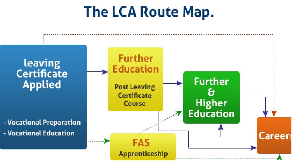 WHAT CAN STUDENTS DO WHEN THEY FINISH LCA? • Look for a job • Get an Apprenticeship • Apply to do a Post Leaving Certificate Course (PLC) • Complete PLC course and continue onto college or get a job. • Apply to become a guard, army officer, cadet, hotel employee, FAS, and as a bank clerk. YOU CANNOT GO DIRECTLY INTO THIRD LEVEL COLLEGES