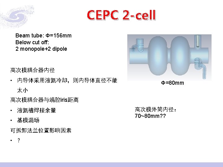IHEP-02 1. 3 GHz low loss Beam tube: Φ=80 mm Φ=40 mm Main coupler: Φ=60 mm