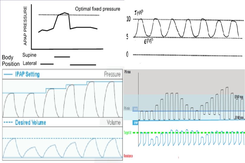 Home Non Invasive Positive Pressure Ventilation 1 - Uni-level positive airway pressure. A-CPAP B-Auto-CPAP 2 - Bi-level positive airway pressure. A- Fixed Bi-level positive airway pressure. B- Automatic Bi-level positive airway pressure eg. Average volume assured pressure support (AVAPS) or Volume compensation , Average volume assured pressure support with Automatic expiration (AVAPS-AE) , Intelligent volume assured pressure support (i. VAPS) 3 - Tri-level positive airway pressure (fixed and automatic). 4 - Automatic Bi-level or Tri-level positive airway pressure with servo-ventiation eg. Adaptive Servo Ventilation (ASV), Bi. PAP auto-SV , Anti-cyclic Servo-Ventilation (Ac. SV)