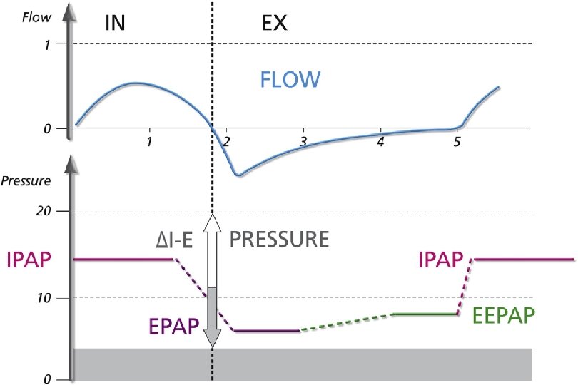 Tri-level Positive Airway pressure The difference between IPAP and EPAP defines the tidal volume. The EEPAP varies automatically due to the level of the upper airway obstruction