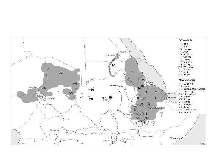 Current distribution of Nilo-Saharan (without Songai and Coman plus Gumuz)
