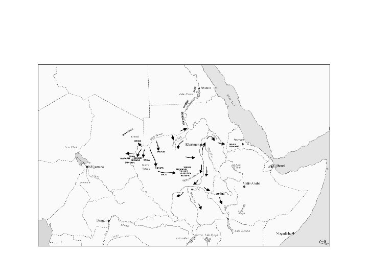 • Research within ACACIA project (Arid Climate, Adaptation and Cultural Innovation in Africa), University of Cologne. • Climatological changes – Around 10, 000 BC emergence of a major riverine system, the Wadi Howar or Yellow Nile (Pachur and Kröpelin (1993: 20). – Upper Wadi Howar, the Middle Wadi Howar and the Lower Wadi Howar teeming with flora and fauna roughly between 8500 BC and 1500 BC. – Pastoralism introduced into the area probably as early as 5000 BC. – Desertification setting in around 3000 BC. – Lower Wadi Howar abandoned by 3000 BC. – Middle Wadi Howar abandoned by 2000 BC. • So what has this got to do with the spreading of the Nilo-Saharan phylum?