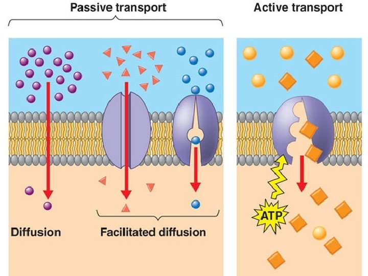 Mechanisms of Passive Transport Defined • requires NO energy • Depends on a concentration gradient – Concentration = relative amount of substance – gradient = difference • SUBSTANCE moves from HIGH concentration to LOW concentration • Some materials can pass freely, other materials need a protein channel • Examples: diffusion, osmosis, facilitated diffusion