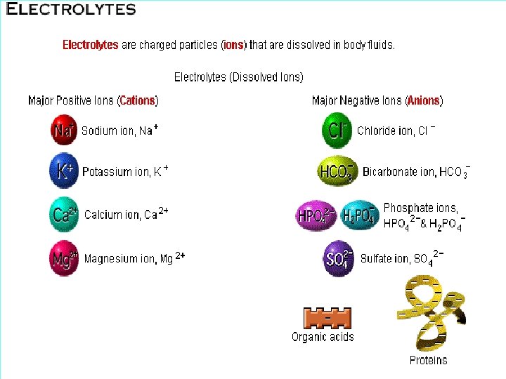 CATIONS (mmol/l) Na Plasma Interstitial Intracellular 142 OF BODY 139 COMPOSITION FLUIDS 14 K 4. 2 4. 0 140 Ca 1. 3 1. 2 0 Mg 0. 8 0. 7 20 Cl 108 4. 0 HCO 3 24. 0 28. 3 10 Protein 1. 2 0. 2 4. 0 HPO 4 2. 0 11 ANIONS (mmol/l)