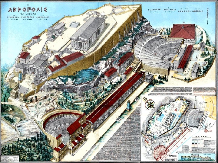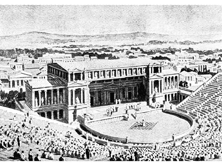 The Theatre of Dionysus • Aristophanes’ main theatre of use was the Theatre of Dionysus. – Located in a hollow on the south side of the Acropolis in Athens – It could seat 15, 000 people – Diameter was the length of a cricket pitch