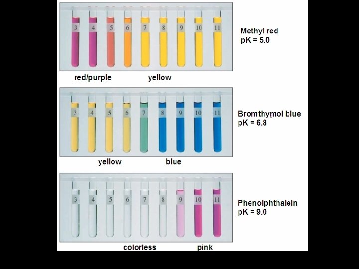 Indicator An indicator is a substance (usually a weak acid) that changes colors at a particular p. H. HInd(aq) + H 2 O( ) H 3 O+(aq) + Ind-(aq) color 1 color 2 We often use indicators in titrations. We choose an indicator so that the end point (point where color change occurs) is as close as possible to the equivalence point for the titration. Based on the Henderson equation p. H = p. Ka + log 10([A-]/[HA]) we expect the color change will occur at p. H p. KInd.