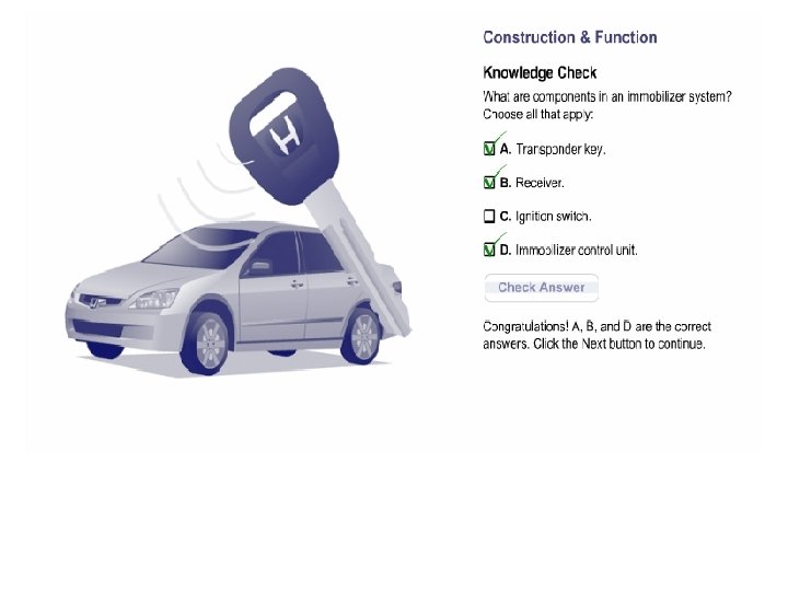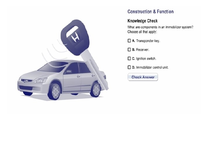 Basic immobilizer components: Key/transponder, lock cylinder (transceiver/receiver), Immobilizer control unit, ECM/PCM