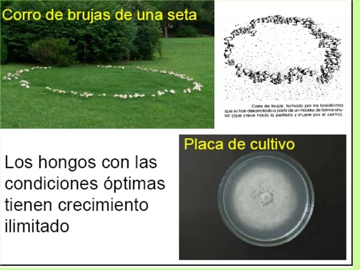 Características generales. • Son eucariotas. • No poseen tejidos ni órganos (Talofitas=poca diferenciación y división del trabajo). • Son heterótrofos ( se alimentan de materia orgánica). – Pueden ser parásitos ( tiña, cornezuelo del centeno). – Saprofíticos ( se alimentan de materia orgánica) Ejm: Los mohos, muchas setas. – Simbiotícos ( líquenes y micorrizas)