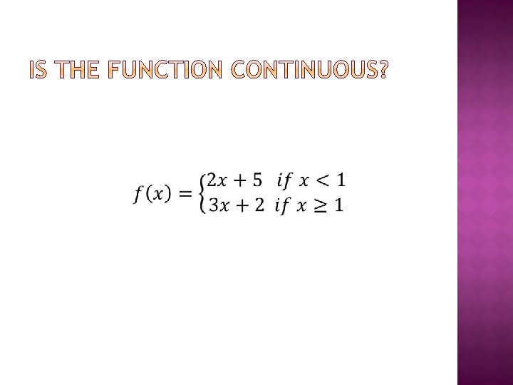 � Solve for k so that f is continuous: