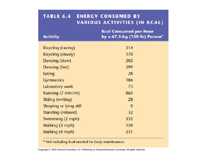 Food energy is measured in calories Food labels: Calorie (Kcal) = 1000 calories calorie = energy needed to raise the temperature of one m. L water 1 degree Celsius 1 gram carb = 4 cal 1 gram fat = 9 cal 1 gram protein = 4 cal