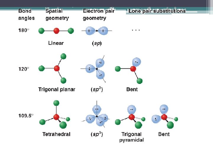 VSEPR Theory, continued • Unshared electron pairs repel other electron pairs more strongly than bonding pairs do. • This is why the bond angles in ammonia and water are somewhat less than the 109. 5° bond angles of a perfectly tetrahedral molecule.