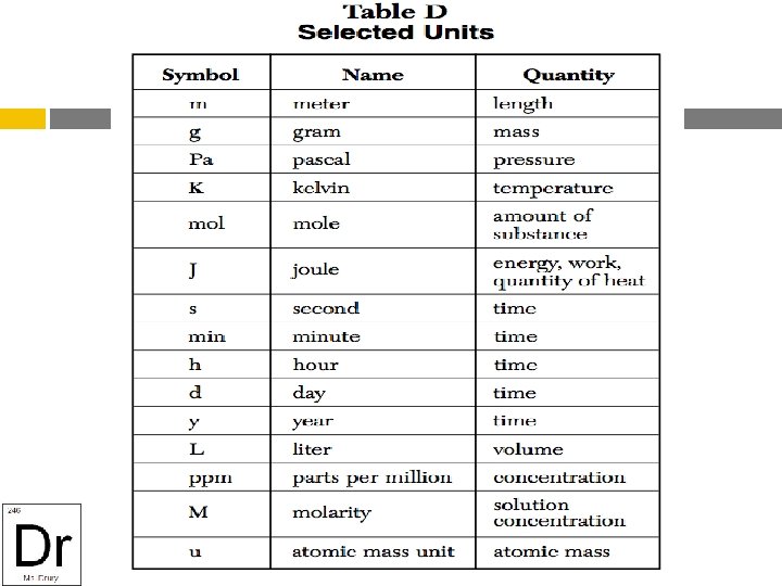 Density Ratio of mass of an object to its volume Use density formula Located on Table T