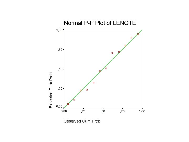 D. Interpreteren van de regressielijn • Regression : Coefficients t Model 1 (Constant) LEEFTIJD a B 64, 928 , 635 Std. Error , 508 , 021 Dependent Variable: LENGTE Sig. Beta , 994 127, 709 , 000 29, 665 , 000