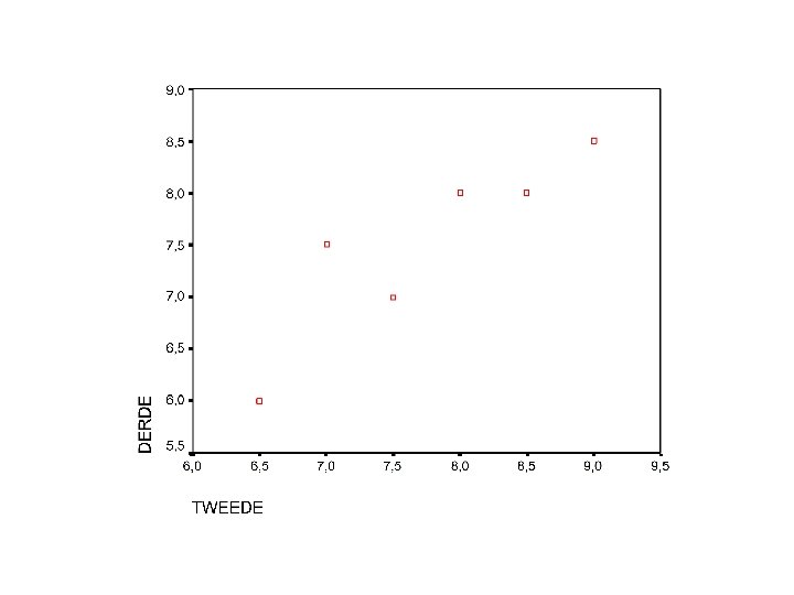• Bij correlatie : 2 kwantitatieve variabelen zonder x en y • Bij regressie : duidelijke x = onafhankelijke variabele y = afhankelijke variabele • Regressielijn : voorspellen van y op basis van x
