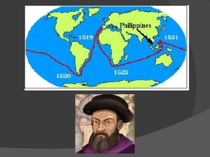 FERDINAND MAGELLAN � In search of westward route to “Spice Islands” � 1519 – reaches water passage at southern tip of South America (Strait of Magellan) � Connects to Pacific Ocean & his crew CIRCUMNAVIGATES the globe � He dies in Philippines � Out of 237 men, only 18 make it home