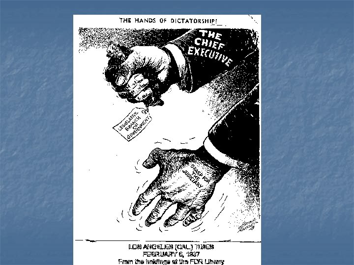 The “Bonus March” n n Veterans of World War I Demonstrate, protest, camp out in Washington DC Hoover orders Army to remove protestors Mac. Arthur and tanks are finally used