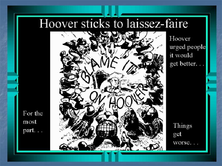 Hoover Key Terms n n n Great Depression Stock Market Crash Hoover's Response to The Crash Chain Reaction-Unemployment-Bank Failures Massive Suffering