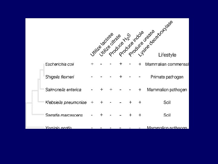 Lateral Gene Transfer and the nature of bacterial innovation Ochman, Lawrence, and Groisman, Nature 405: 299 -304 • Single celled organism, genome varies only by an order of magnitude. • Narrow taxonomic groups, phenotypic diversity is remarkable. • Usually have a unique set of physiological characters to define its particular ecological niche.